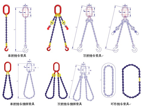 鏈條索具:用一定長度的鏈條,兩端加連接件,實(shí)現(xiàn)吊鉤到被吊物的連接,最終達(dá)到吊運(yùn)目的。