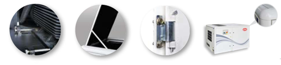 — -一體式冷卻模塊,專利設(shè)計的冷卻風(fēng)扇配合特別設(shè)計的導(dǎo)風(fēng)罩,有效降低了機組噪音,同時提高了機組的運行效率 — 機組采用離心式風(fēng)扇 |